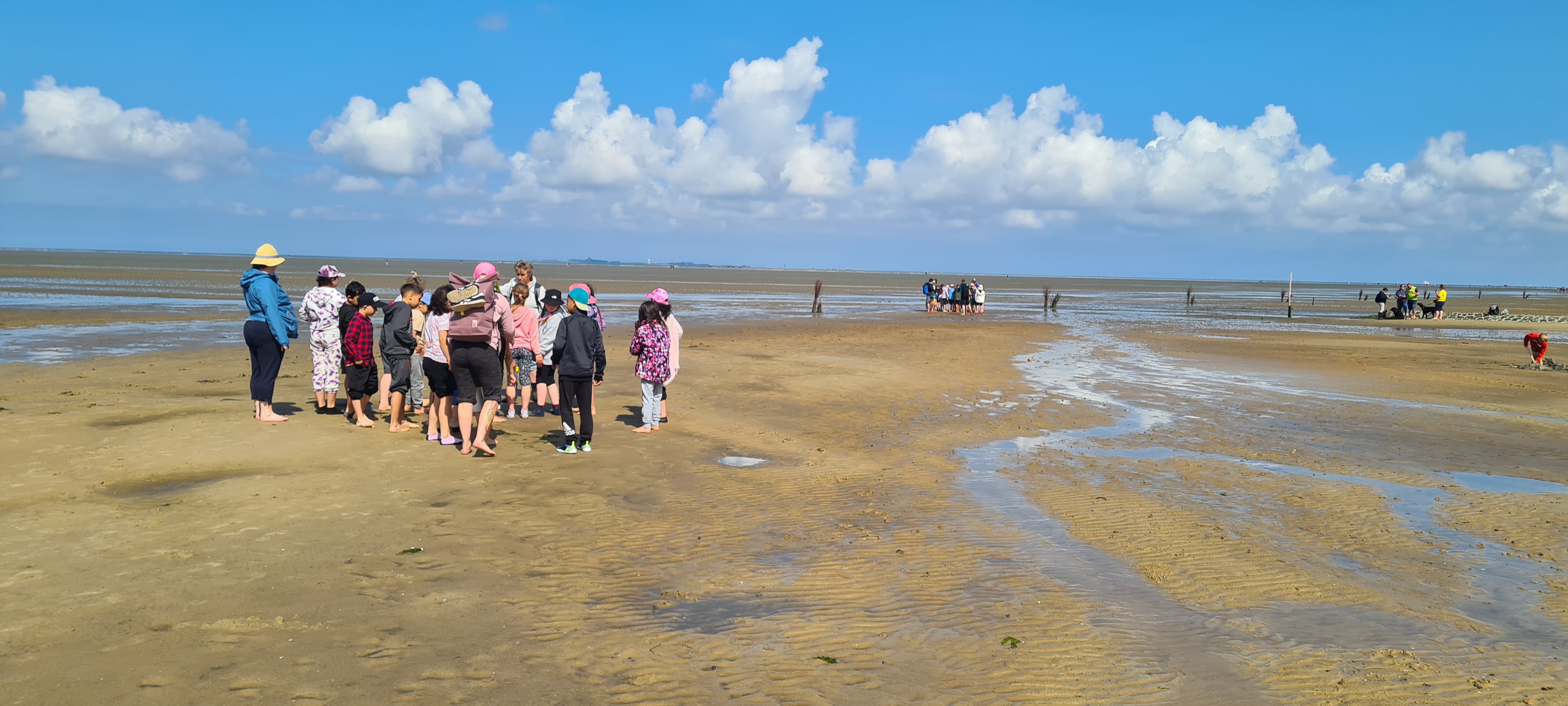Diese Wattwanderung kann bei größter Vorsicht auf eigenes Risiko auch barfuß gelaufen werden, auch Gummistiefel möglich.